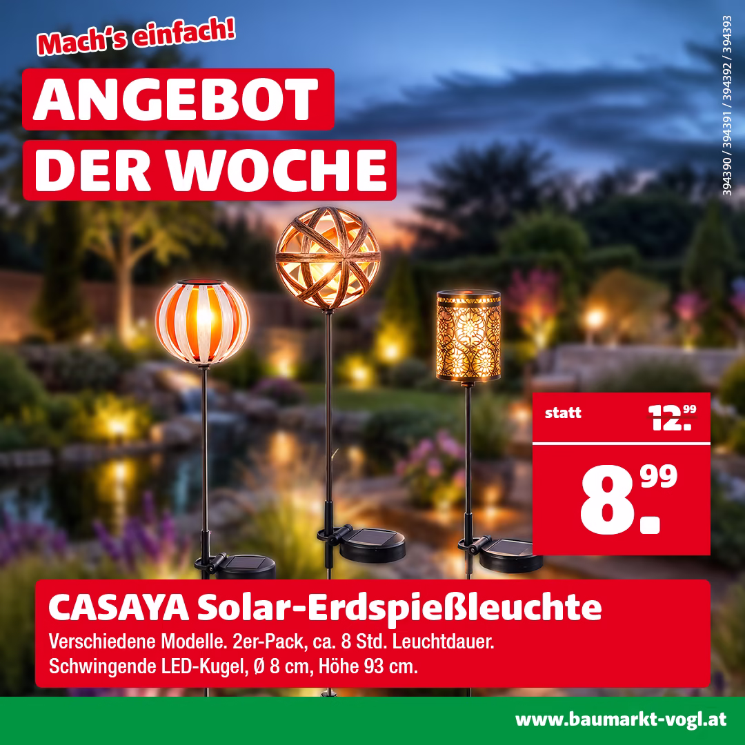 Verschiedene Modelle im praktischen 2er-Pack, ca. 8 Stunden Leuchtdauer – einfach aufstellen, Sonne tanken lassen und genießen.