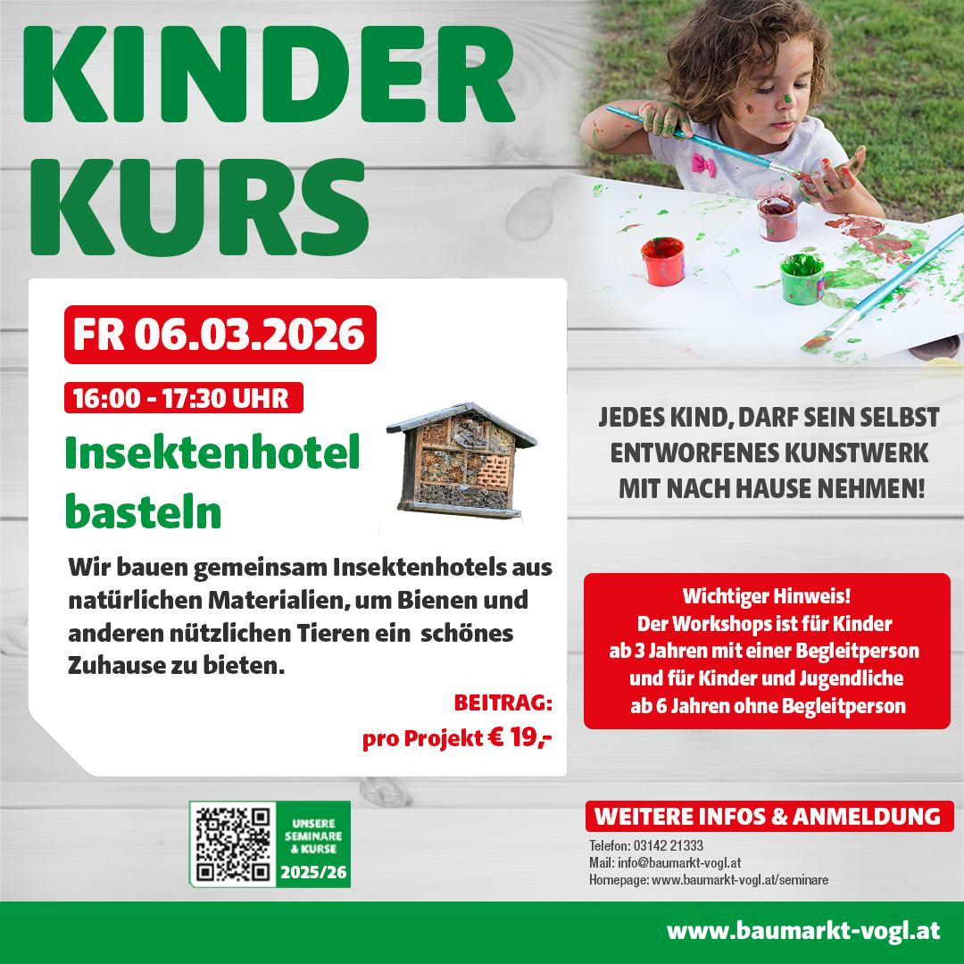 Anmeldungen sind hier online, im Baumarkt bei der Information bzw. unter 03142-21333 oder per Mail an info@baumarkt-vogl.at möglich.